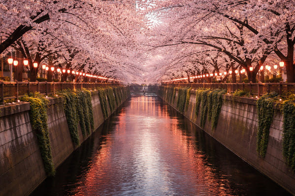 目黒川の桜は東京の中でも特に人気が高く、約800本の桜が川沿いに続く景色はまさに圧巻。