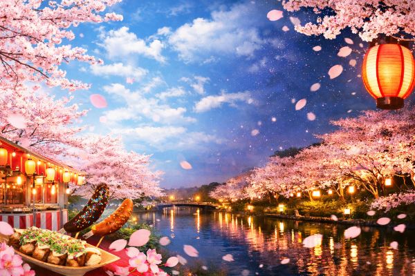 桜まつりの楽しみといえば、やはり屋台グルメも外せませんよね。花見をしながら温かい食べ物を味わえるのは、お祭りならではの魅力です。